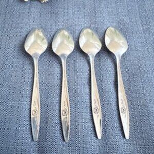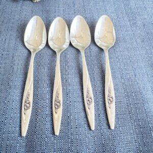 🌸 Vintage Oneidacraft Deluxe Stainless Teaspoon Set (4) – Floral Scroll