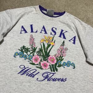 Vintage Oneita Alaska Purple Undershirt Wild Flowers Shirt Medium