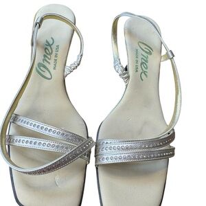 👠 Vintage Onex Silver Strappy Rhinestone Kitten Heel Sandals Size 8.5 👠