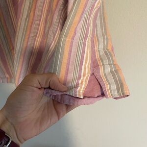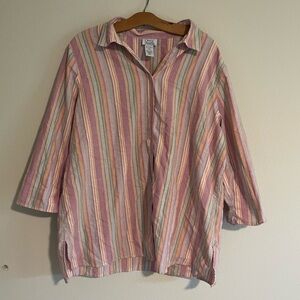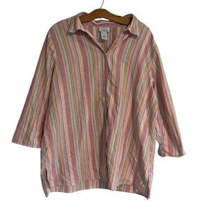 Vintage Only Necessities Pink Orange Striped Button Down Shirt 3/4 Sleeve 18W