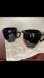 This vintage black glass creamer and sugar bowl set features a bulbous body paired with trophy-like handles reminiscent of L.E. Smith glassware. Although unsigned, many authentic L.E. Smith pieces were also unsigned, making this set a likely match. Dating from the 1930s or 1940s, it exudes classic Art Deco charm.