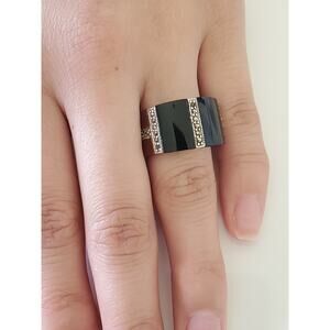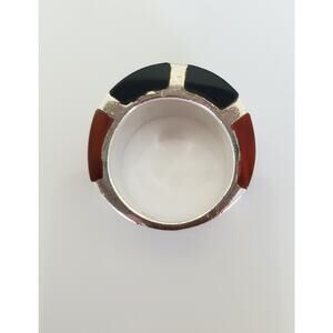 Vintage Onyx Carnelian and Marcasite Sterling Silver Wide Ring Band