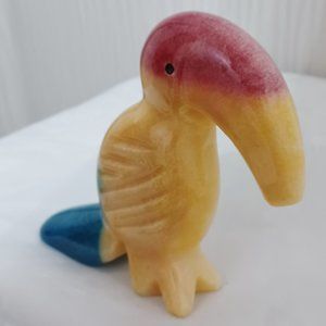 Vintage Onyx Toucan Bird Figurine Tropical Red Yellow Blue Carved Stone 5 in (A)