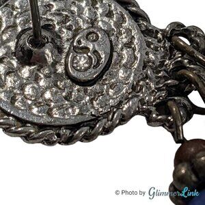 Each earring measures approximately 1 5/8" long and 7/8" wide. They have new silver tone replacement backings.