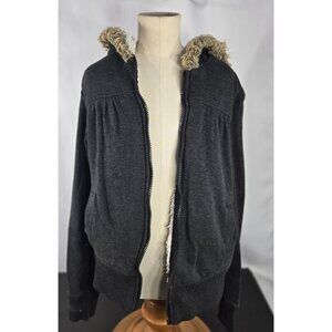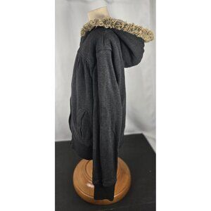 Vintage Op Girls Sherpa lined Hooded Jacket small Gray broken zipper