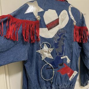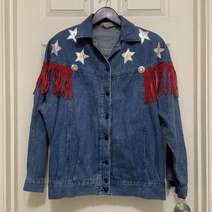 Vintage Opal Jean Denim Jacket Cowgirl Rodeo Country Western 80s 90s 4th Of July