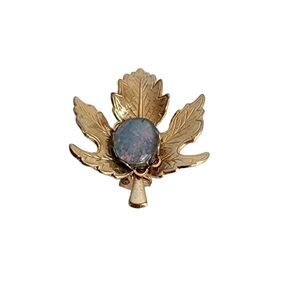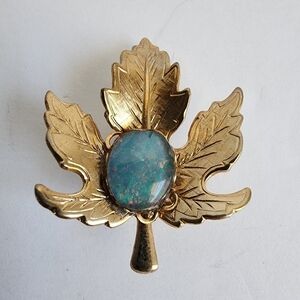 Vintage Opal Maple Leaf Brooch Gold Tone Iridescent Fall Pin Small