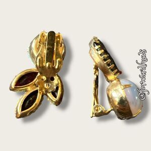 Given the materials and design, these earrings could be vintage, possibly from the mid-20th century (1950s to 1960s). The use of opalescent glass and ruby glass was particularly common during this period in costume jewelry.