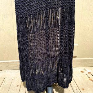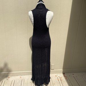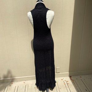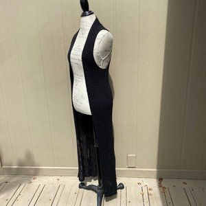 Vintage Open Crochet Boho Long Sweater Vest Cardigan