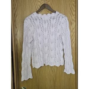 Vintage Open Knit Crochet Sweater Light Pink Worthington Essentials Size Large