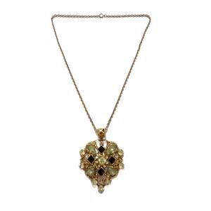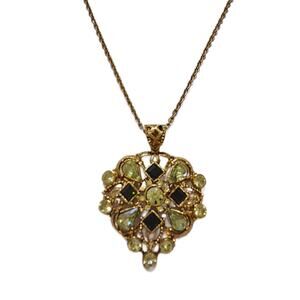 Vintage Open Work Emerald Green and Peridot Crystal Pendant Necklace