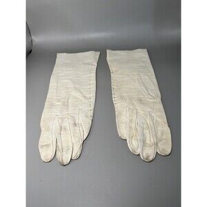 Vintage White Leather Opera Gloves Womens Medium Formal Evening 1950s