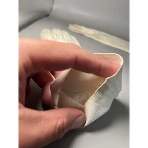 Condition: Good vintage condition with moderate signs of wear and some small blemishes, as shown in photos. Light soiling on fingers and minor creasing throughout. No major tears or holes present. All seams intact.