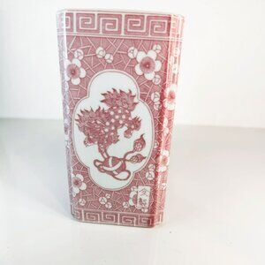 Vintage Opium Den Pillow Chinese Headrest Foo Dog Red White Ceramic