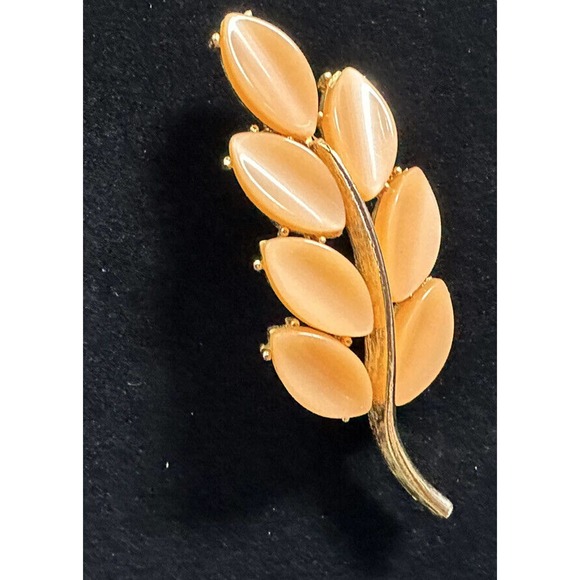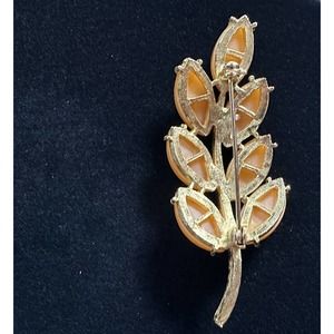 Vintage Orange Celluloid 50’s Leaf Goldtone Brooch Unbranded 3-D