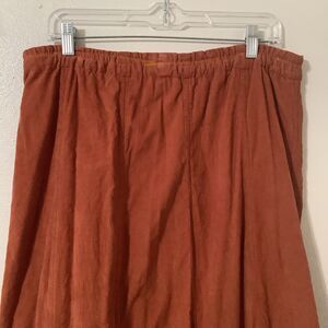 Vintage Orange Corduroy Cotton Festival Boho Hippie Pleated Ruffle Maxi Skirt M