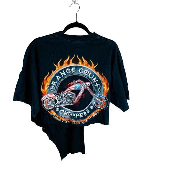 Vintage Orange County Choppers Flame Graphic Black Cropped Biker Tee Shirt XL
