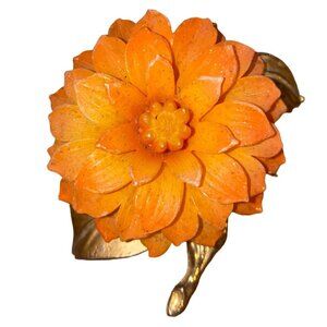 Vintage Orange Flower Brooch Pin - Retro Floral Statement Jewelry