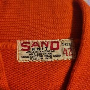 Vintage Orange Letterman Sweater Sand Knit Wear Wool 50s 60s Athletic Size 42