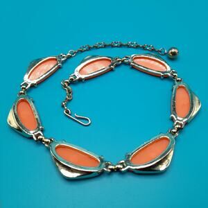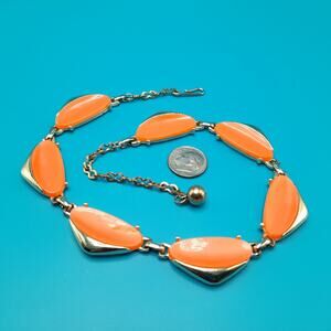 *Description: This is a mid-century vintage choker necklace made with orange Lucite and gold tone metal with a chain and hook clasp from around the 1950s. This would be a great addition to your jewelry collection or make a great gift!