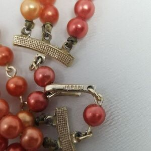 Vintage Orange Ombre Three Strand Beaded Necklace, Adjustable Hook Clasp, Japan