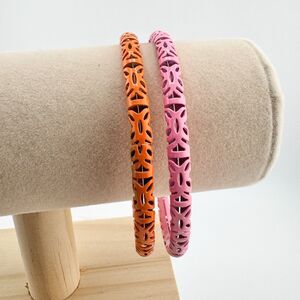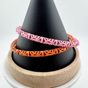 Vintage Orange Pink Enamel (2) Bangle Bracelets Cut-Out Design Retro Stackable