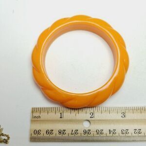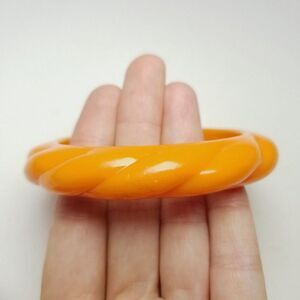 Vintage Orange Plastic Bangle Bracelet, Retro Stacking Twist Design, 70s Style