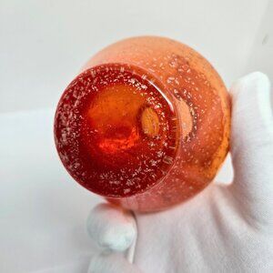 Vintage Orange / Red Glass Pitcher Bud Vase, Clean Handle, Silver Specks, 6"