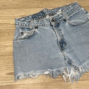 Vintage Orange Tab Levi’s Distressed Cut Off Midrise Denim Shorts Waist 28”
