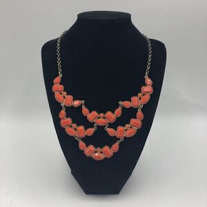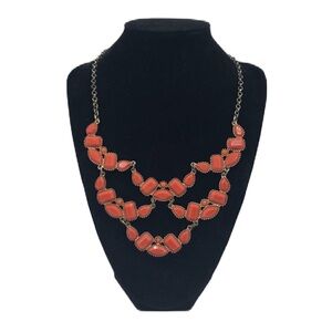 Vintage Orange Tiered Layered Statement Necklace with Gold Bronze Tone Chain