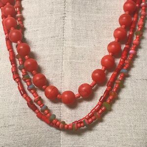 This triple-strand beaded necklace has subtle green, blue, pink, and red beads that contrast beautifully with the bold orange color. And, it has a cool magnetic closure to boot!
