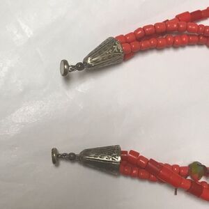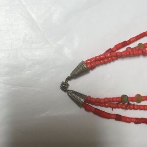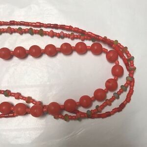 Vintage Orange Triple-strand Beaded Necklace Magnetic Closure