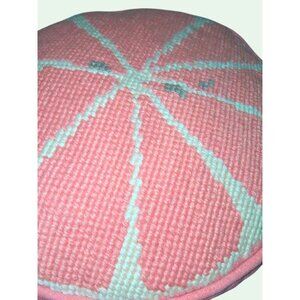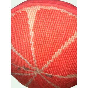 Vintage Orange Velvet Round Pillow Mid Century 15"x3" Woven Citrus