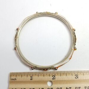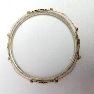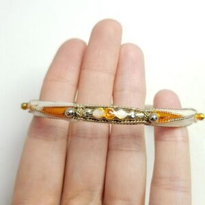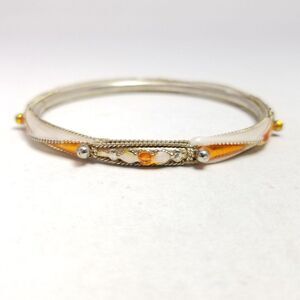 Vintage Orange and White Enamel Bangle Bracelet, Silver Tone Metal, Estate