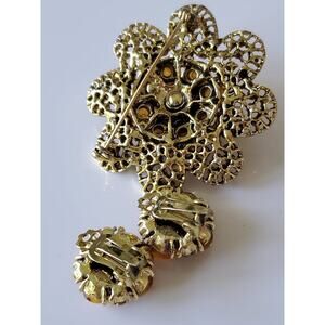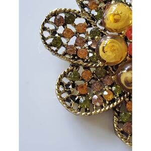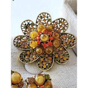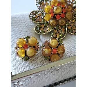 Vintage Orange and Yellow Bead Filigree Brooch & Earring Set