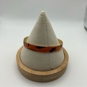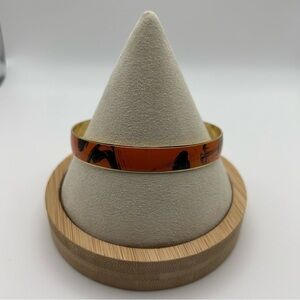 Vintage Orange with Black Swirls Gold Tone Bangle Bracelet