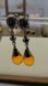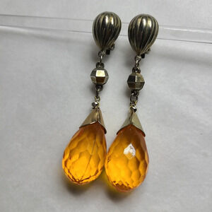 Gorgeous darker yellow beads dangle down with brassy metal base. Era most likely 70s, possibly late 60s.