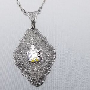 Vintage Order Of The Pythian Sisters Pendant Silver Tone Filigree Enamel, Broken Chain