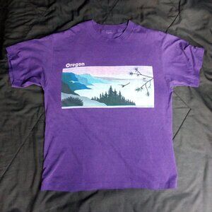 Vintage Oregon Coast Landscape T-Shirt - Size Large (Estimate, Size Tag Removed), Measures p2p=21" Length=24" - Excellent Condition, No Flaws - Purple Color Shirt