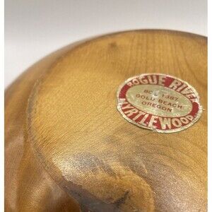This vintage serving bowl from Rogue River Myrtlewood is a unique addition to any collection. The natural wood grain pattern and brown color give it a rustic feel, perfect for serving salads or other dishes. Measuring 4 inches in diameter and 4 inches in height, width, and depth, it's the ideal size for serving larger portions. The bowl is made of myrtlewood, adding to its durability and longevity. Its theme is bowling, making it a great conversation starter at any dinner party. This set includes one serving bowl, perfect for Rogue River Myrtlewood collectors or anyone looking for a conversation piece.