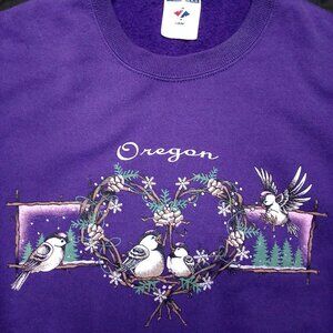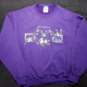 Vintage Oregon Songbird Wreath Heart Flowers Crewneck Sweatshirt - Size Medium, Measures p2p=21" Length=24" Sleeve Length=23" - Excellent Condition, No Flaws, Purple Color Shirt