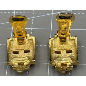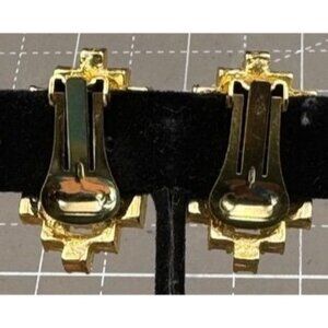 These vintage clip-on earrings feature a striking gold-toned reometric design. Ideal for adding a touch of elegance to any ensemble.