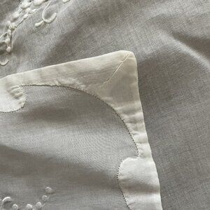 Vintage Organdie Madeira Floral Embroidered Square Tablecloth.