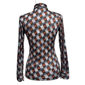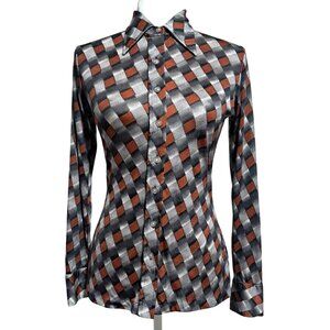 Vintage Organically Grown Arpeja Womens Button-Up Shirt Geometric Pattern Nylon