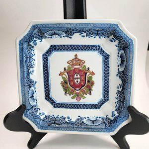 Vintage Oriental Accent Delft Square Plate Crest and Asian Blue and White DH792