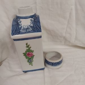 Vintage Oriental Accents Porcelain Handpainted Decanter Tea Caddy 8.25"×6