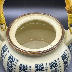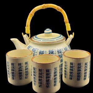Vintage Oriental Asian Style Ceramic Teapot & Cup Set With Bamboo Handle