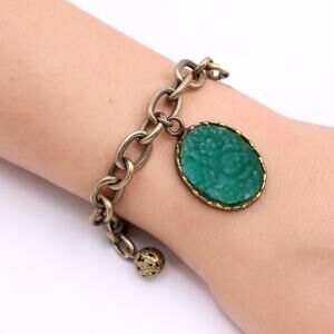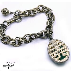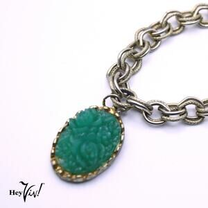 Vintage Oriental Asian Style Charm Bracelet Green Oval Dangle 7" Chain - Hey Viv