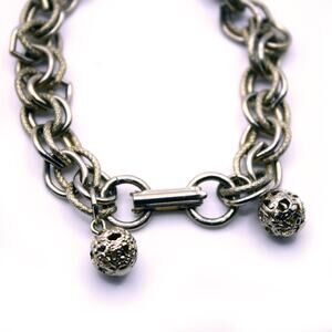 * The bracelet has a small filigree gold ball bead at each end of the chain.