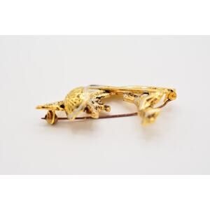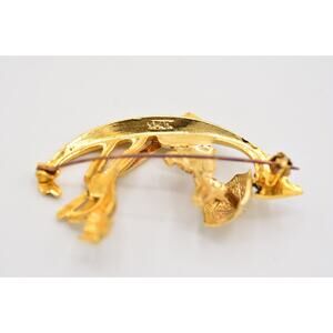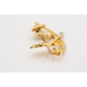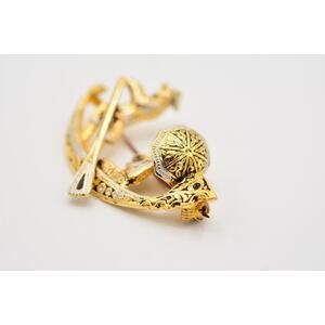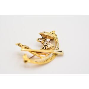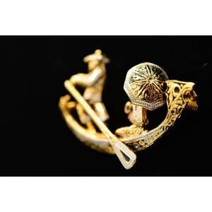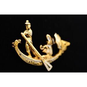 Vintage Oriental Boat Damascene Pin Brooch Tourist Gold Spain Signed 1980s BinJ